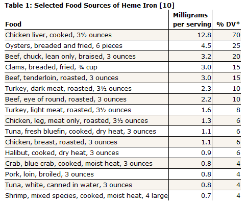 You get iron from a number of foods. There are 2 types of iron in our diet: