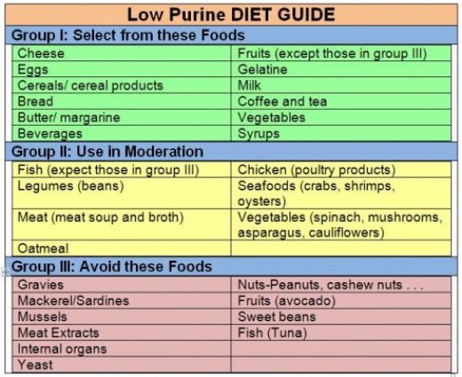 A low purine diet means eating foods that do not have many purines in them. Purines can be found in some foods and make up 15% of the uric acids found in the body. Uric acid comes from the breakdown of purines. The body does not use uric acid so it is usually filtered by the kidneys and taken out in the urine. When uric acid builds up in the body, it can cause pain and swelling known as gout. It may also cause kidney stones. You may need to follow this low purine diet if you have these problems.