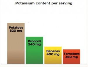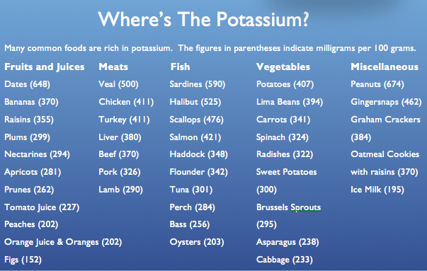 Potassium is a mineral found naturally in many foods and in your body. Potassium-rich foods will help maintain your blood potassium levels, a factor which controls many body functions. Potassium-rich foods may be needed if you are taking certain medications such as some types of diuretics (water pills), or if you have a medical condition that is causing you to need extra potassium. Taking in more potassium may help lower high blood pressure. The blood potassium level in your blood should be watched closely by your doctor. Although fruits and vegetables tend to contain the most potassium, listed below are other examples of foods that contain large amounts of potassium.